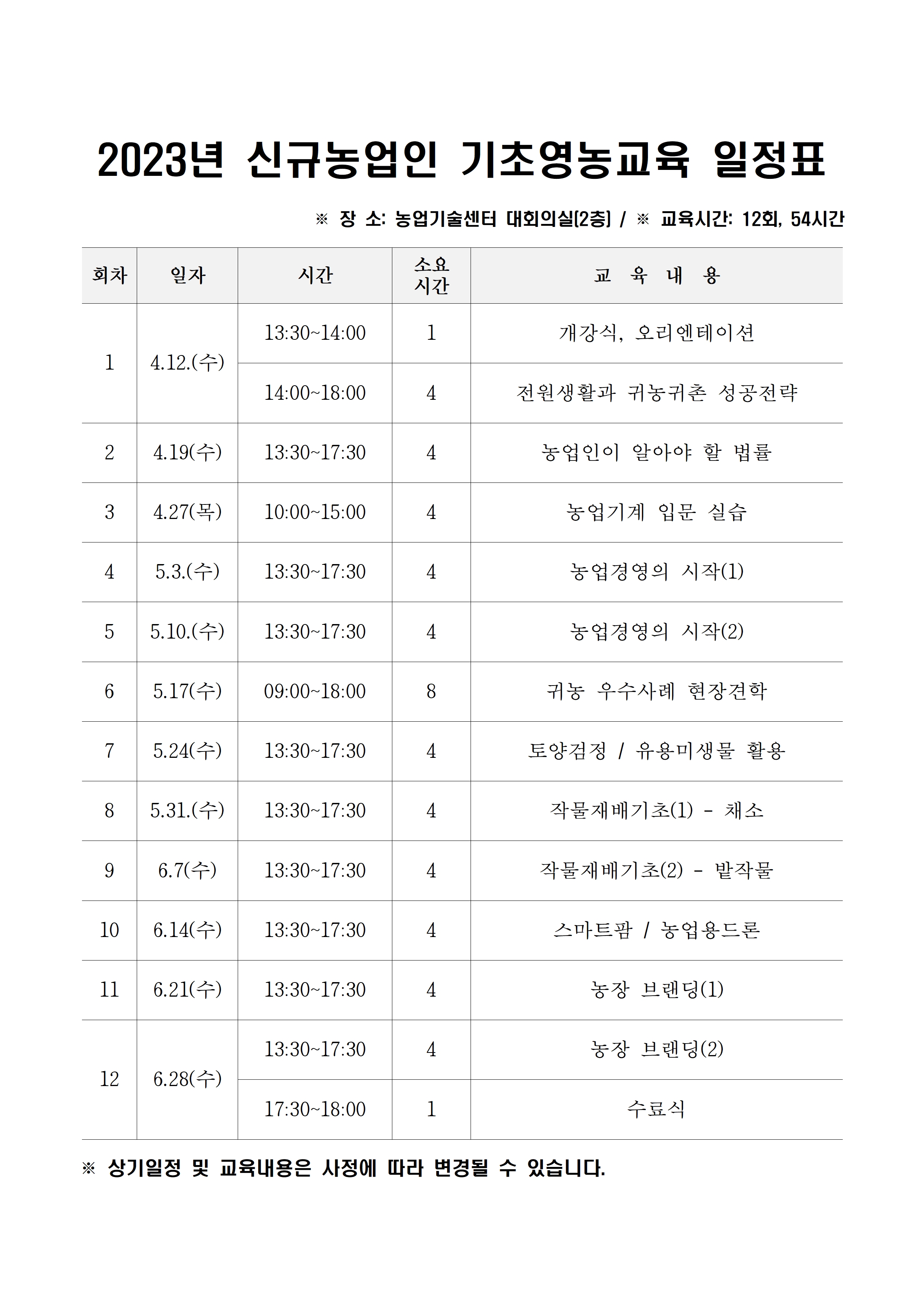 2023년 신규농업인 기초영농교육 모집안내