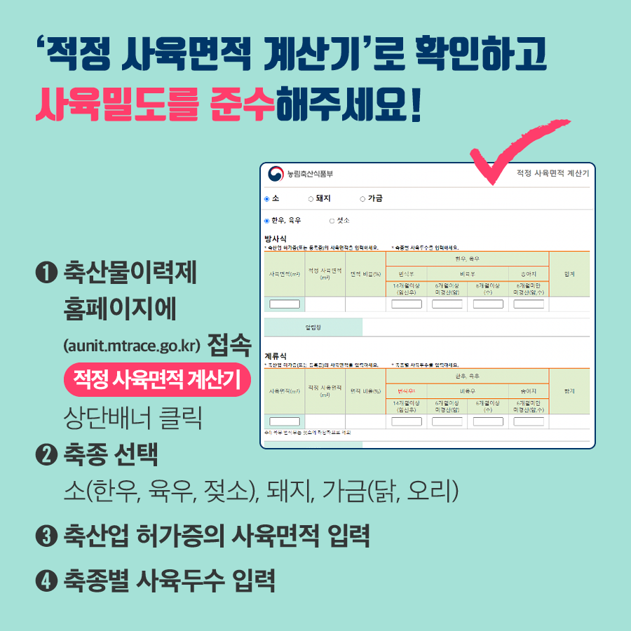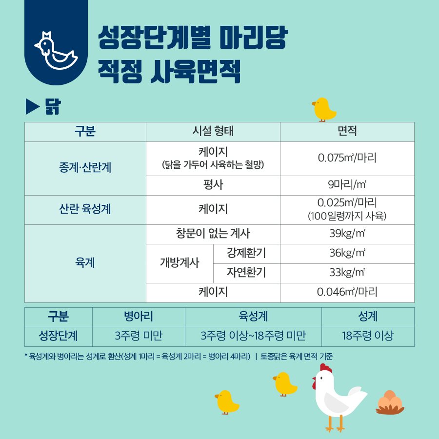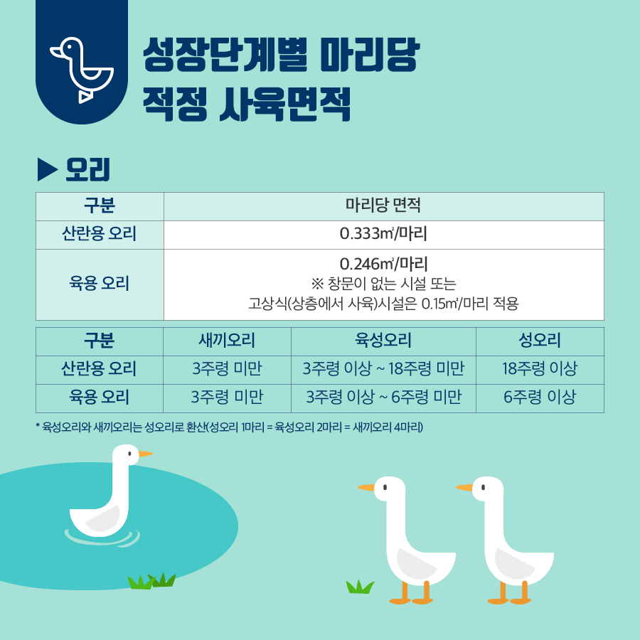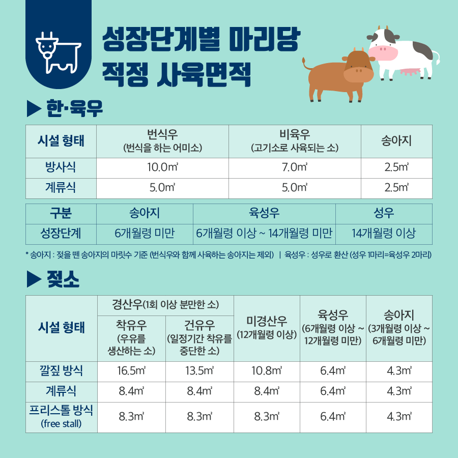 축사 단위면적당 적정사육기준 안내