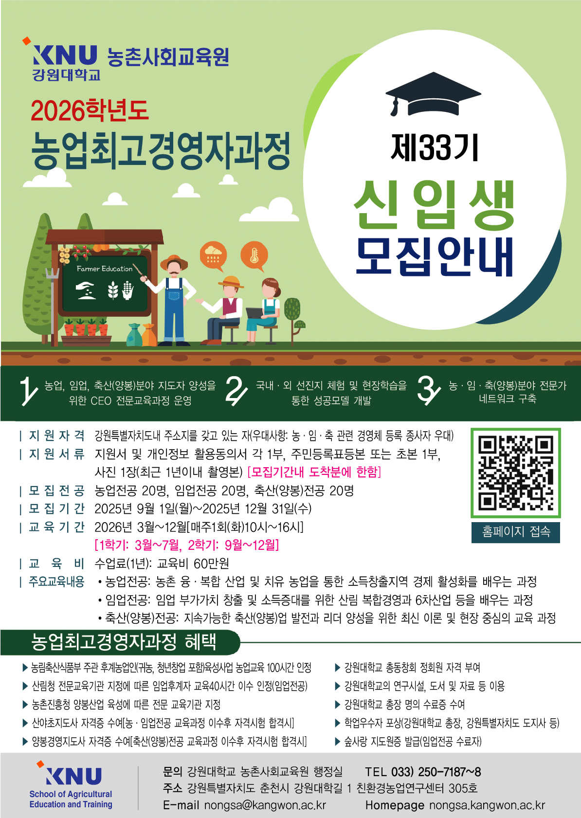 1. 현장접수(주소): 강원대학교 친환경농업연구센터 농촌사회교육원 305호(033-250-7187~8)
