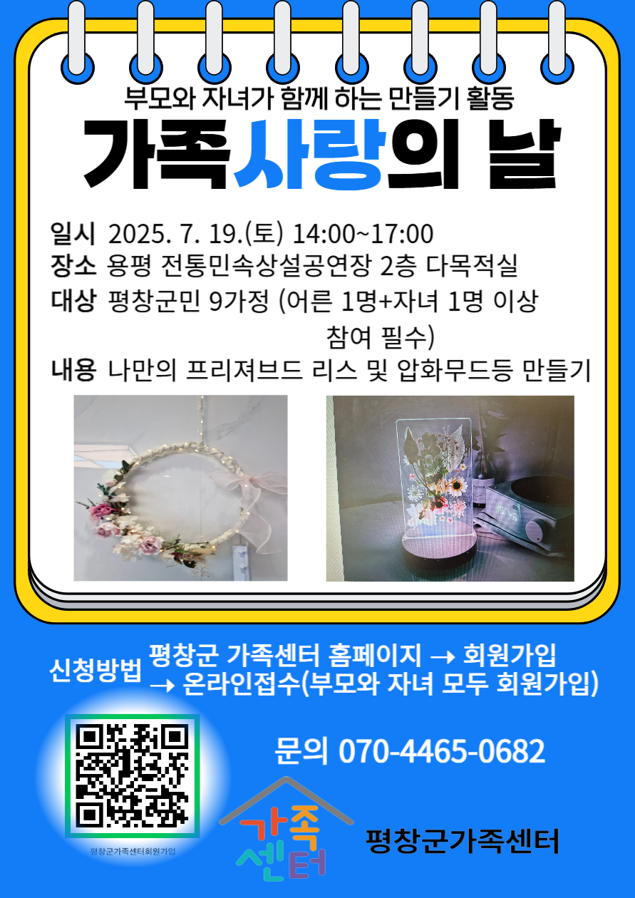 [평창군가족센터] '가족사랑의 날' 나만의 프리져브드 리스 및 압화 무드등 만들기 "용평" 대상자 모집