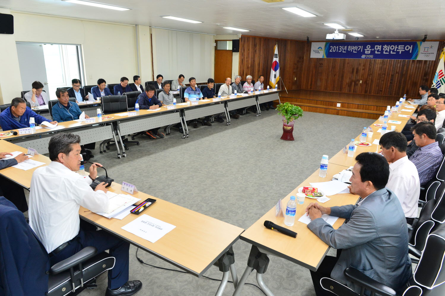 방림면사무소 회의실에서 이석래 평창군수를 비롯한 남동선 방림면장과 이장 사회단체장등 관계자 40여명이 참석한 가운데 2013년도 하반기 주민 의견 수렴을 위한 읍면 현안투어가 있었다. (평창포토뉴스 김춘호)