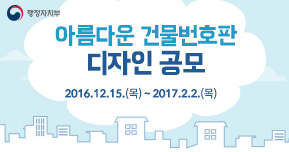 2. 행정자치부에서는 도로명주소 정착을 위해 소유자가 관심을 갖고 자율형 건물번호판 설치 및 확대를 도모하기 위하여「아름다운 건물번호판 디자인 공모」를 진행하고 있습니다.