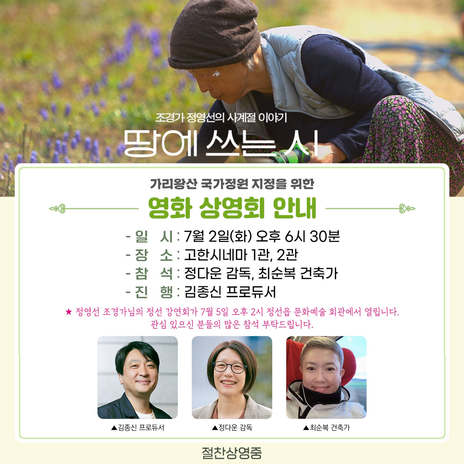 ‘땅에 쓰는 시’ 상영회가 7월2일 저녁 고한 시네마,