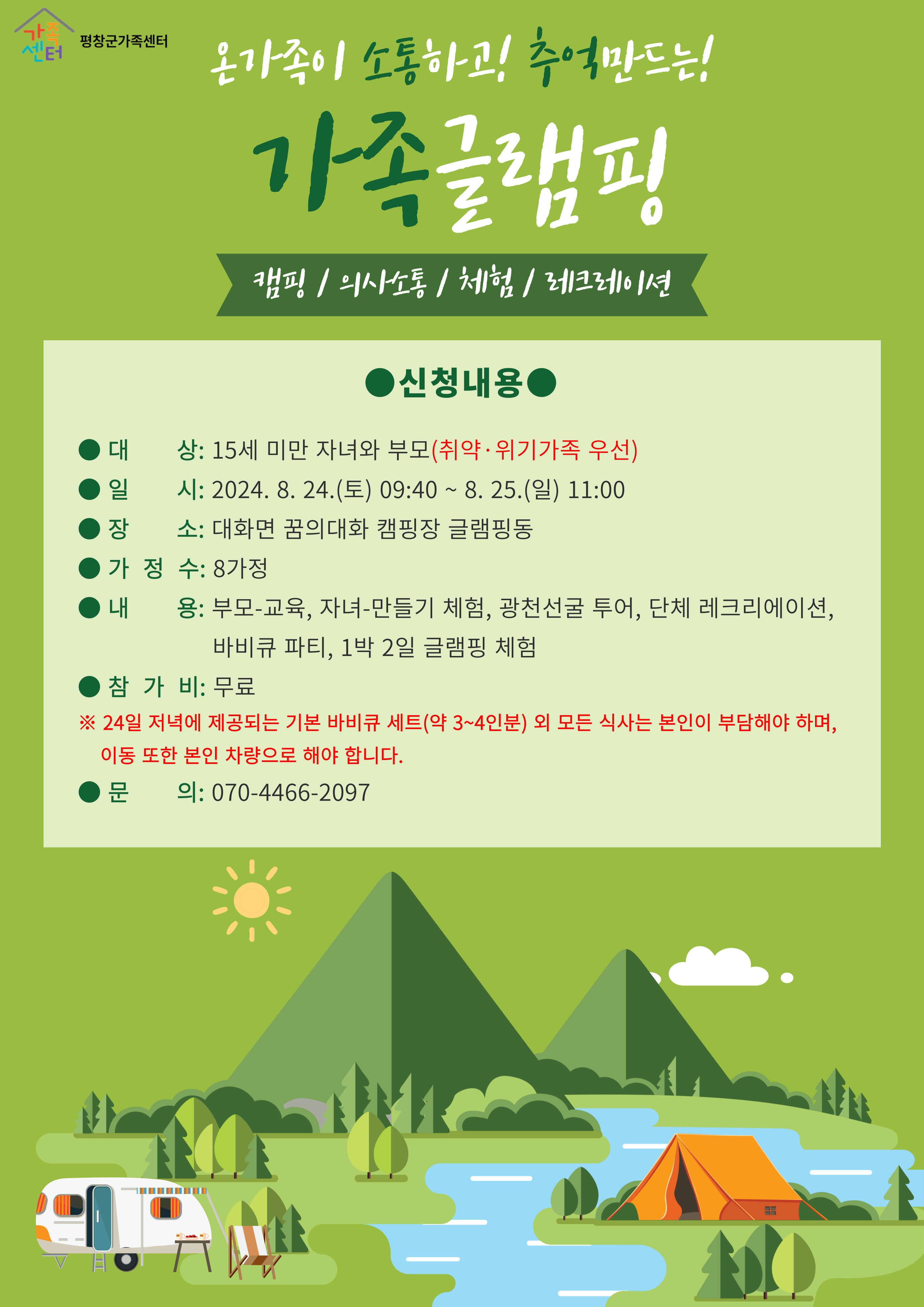 [평창군가족센터] 2024년 가족글램핑 대상자 모집