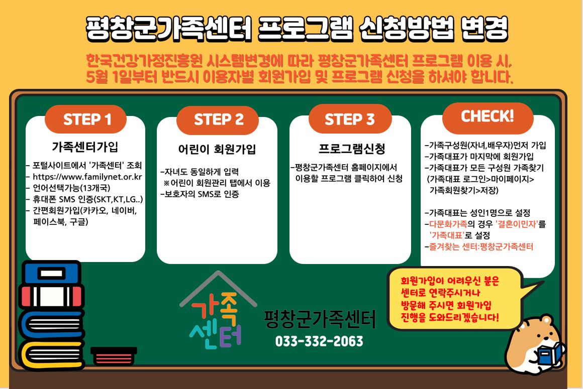 4. 신청방법: 평창군가족센터 홈페이지 → 회원가입 → 온라인 접수