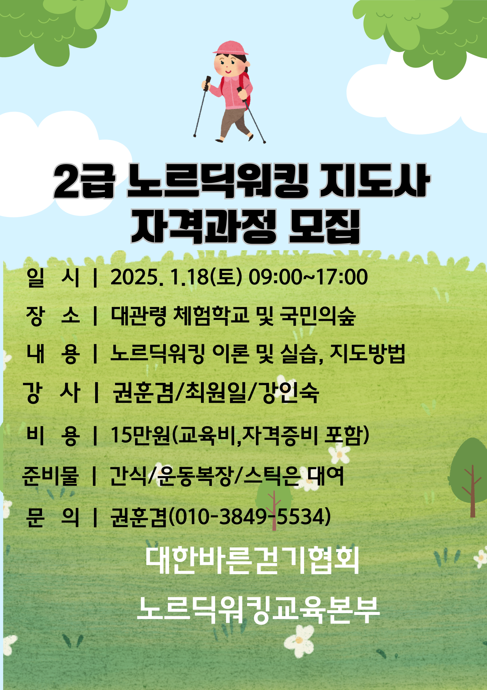 2025년 1월 18일(토), 노르딕워킹 지도사로서 한 단계 성장할 수 있는 특별한 기회가 여러분을 기다립니다!