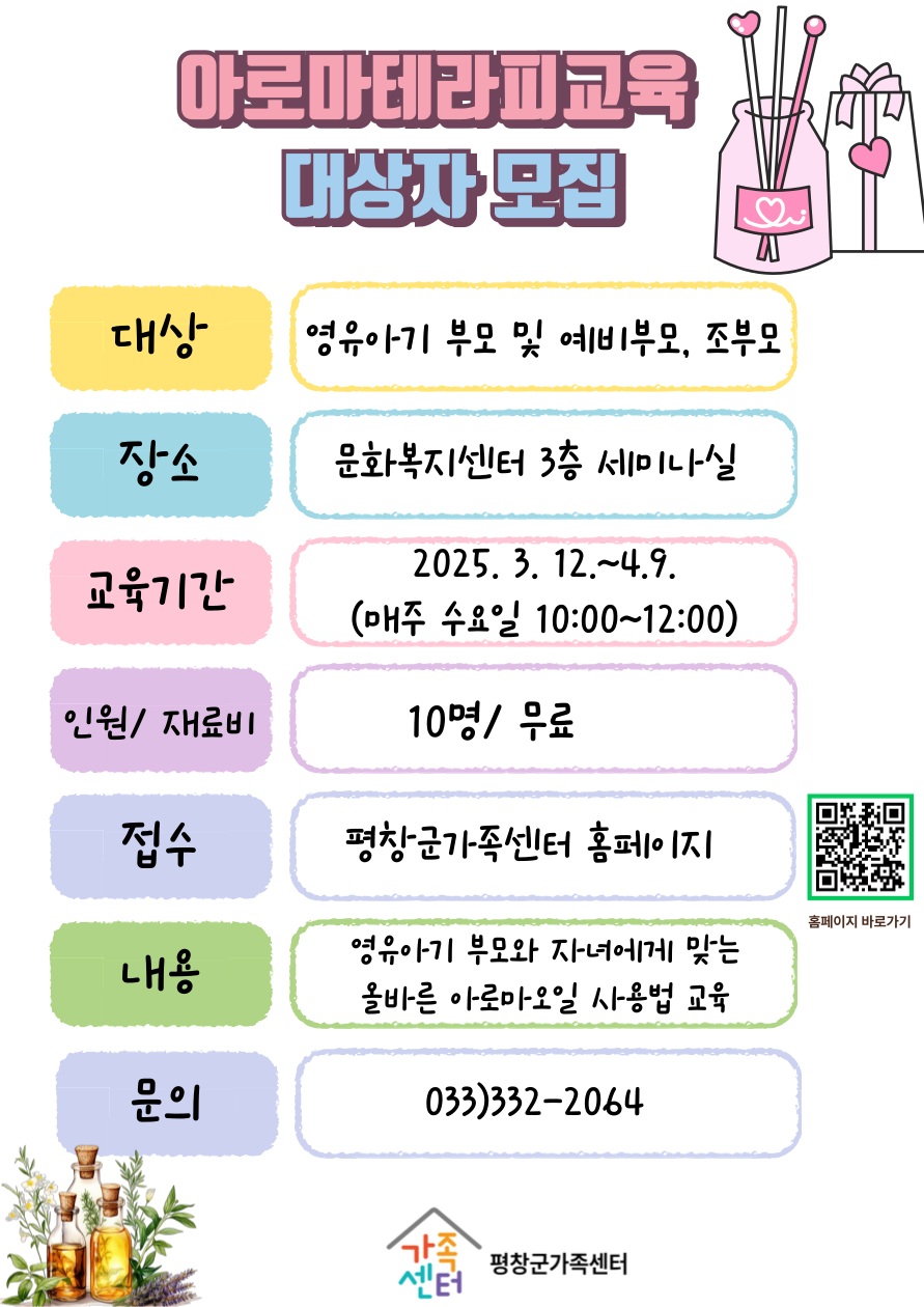 평창군가족센터 아로마테라피 교육 대상자모집