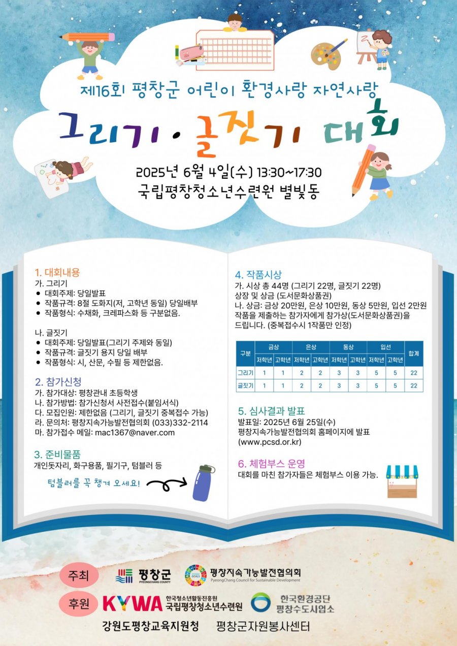 1. 대회명: 제16회 평창군 어린이 환경사랑 자연사랑 그리기·글짓기 대회