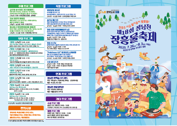 짜릿한 즐거움과 낭만, 뜨거운 여름을 한방에 날려 버릴 최고의 휴식처, 깨끗한 자연과 건강한 삶, 그 속의 쉼이 있는 정남진 장흥을 흠뻑 느끼고 즐길 수 있는 『제18회 정남진 장흥 물축제』에 많은 참여바랍니다.