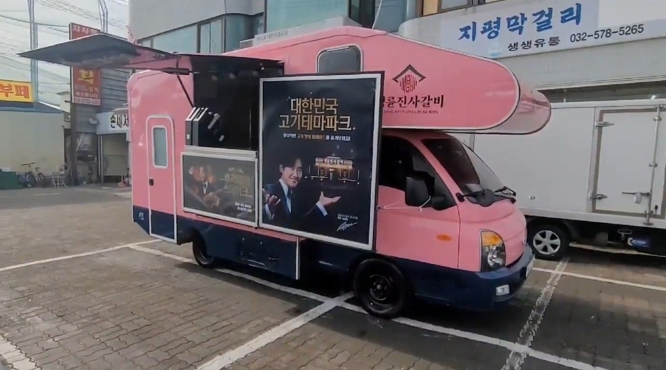 핑크색이어서 눈에 잘띄어 푸드트럭으로서 아주 좋은 장점을 가지고 있습니다