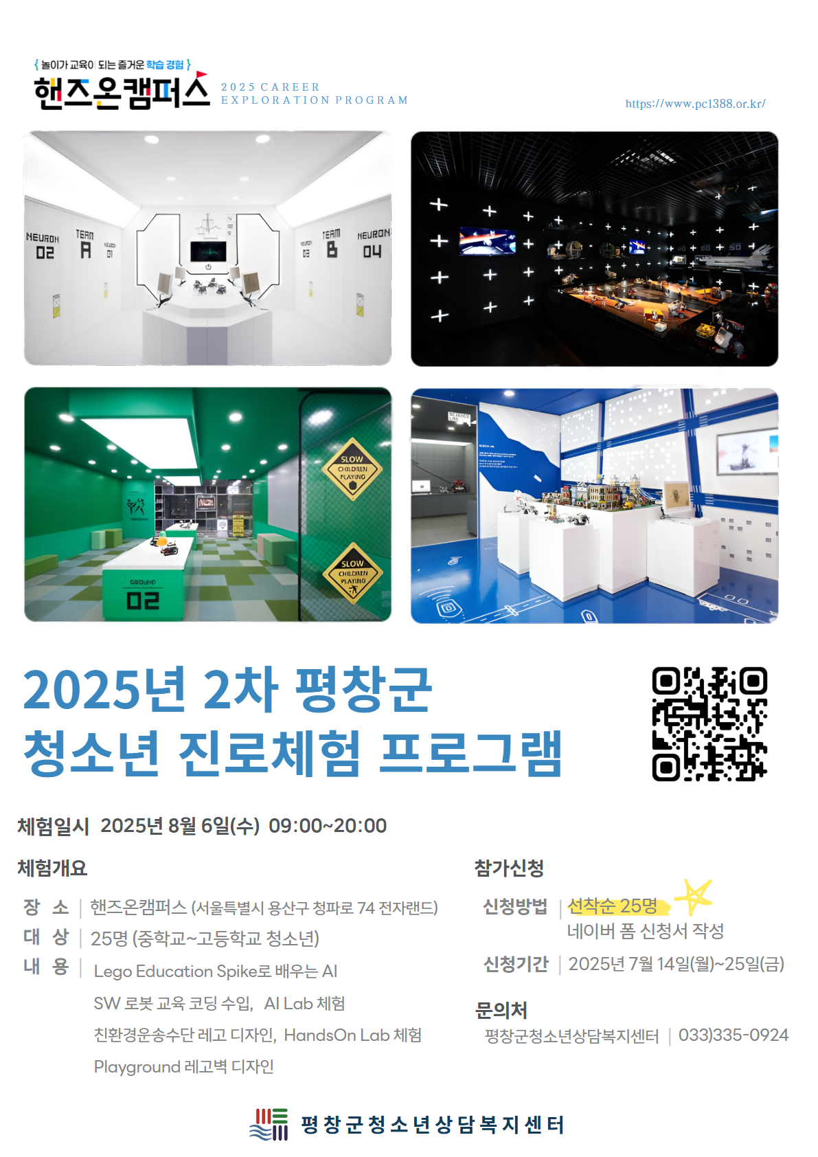 2025년 2차 평창군 청소년 진로(체험) 프로그램 안내 – ‘소프트웨어-로봇교육체험관 핸즈온캠퍼스'로 여러분들 초대합니다. ^^