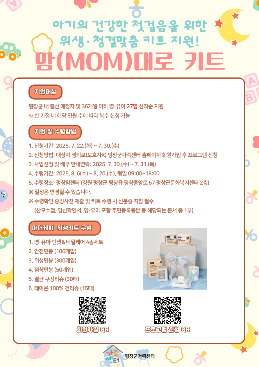 [평창군가족센터]“맘(MOM)대로 키트” 대상자 모집합니다.