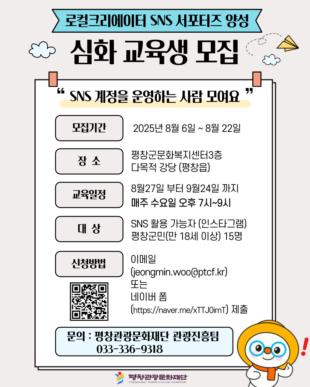 ★(재)평창관광문화재단 / 로컬크리에이터 SNS 서포터즈 양성 심화 교육생 모집★