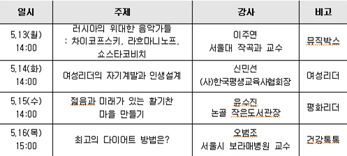 5월 3주차 HAPPY700평창 시민대학 강좌안내