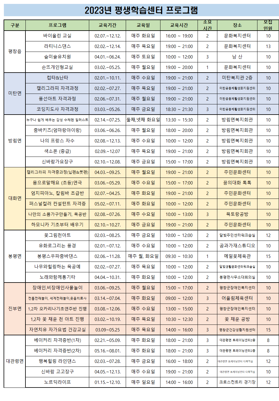 2023년 4월 평창군 찾아가는 평생교육 배달강좌 모집 공고