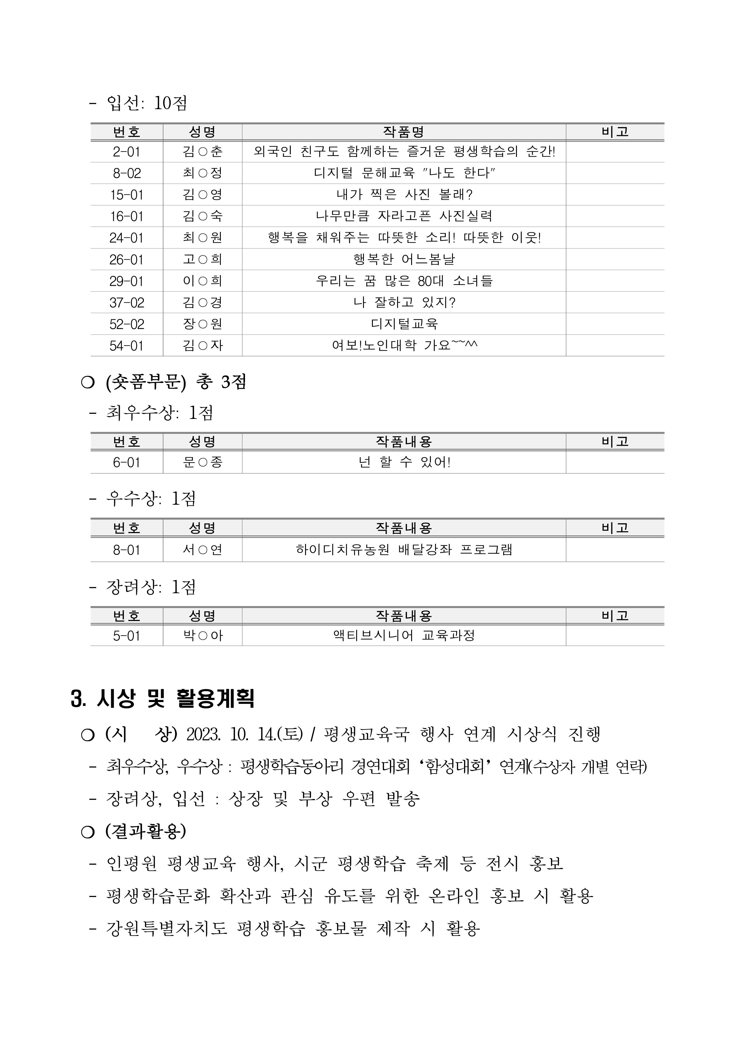 강원특별자치도 평생학습 사진&숏폼 공모전 수상작 공고