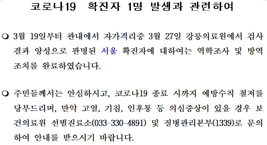 3.13 이후 해외 입국한 군민 코로나19 검사실시(3.27~)