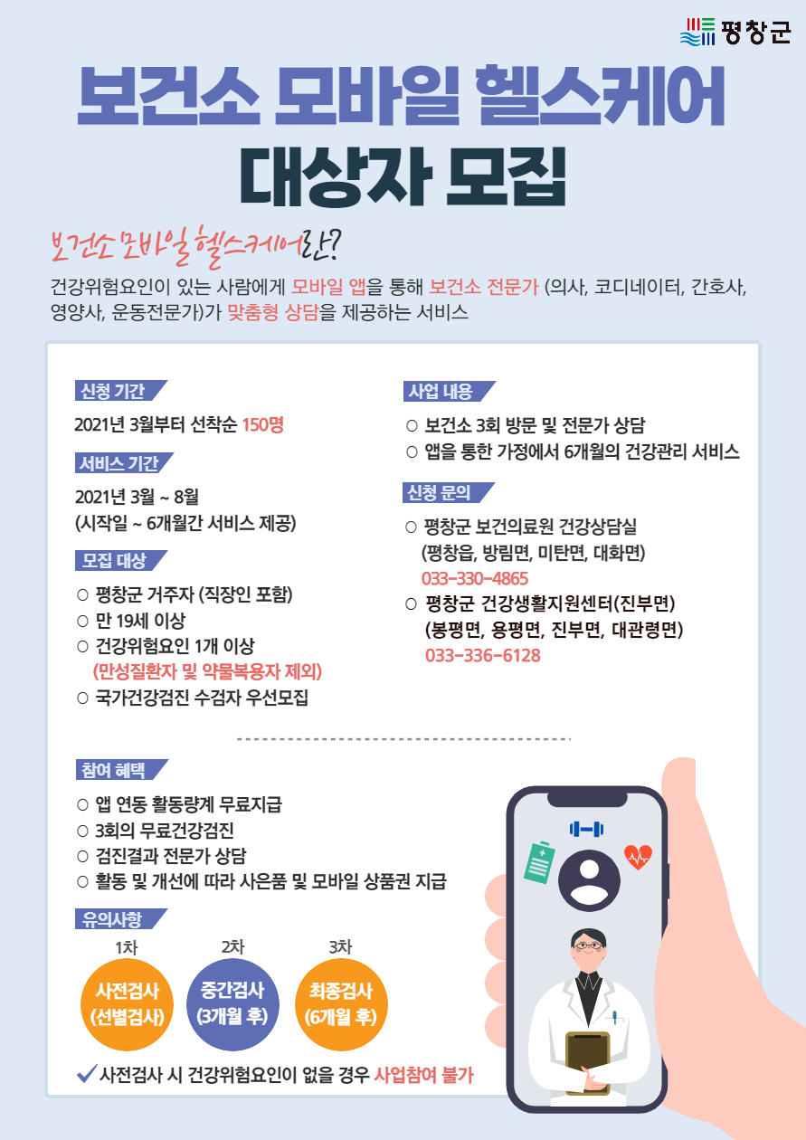♣ 2021년도 보건소 모바일 헬스케어 사업 참여자 모집합니다.
