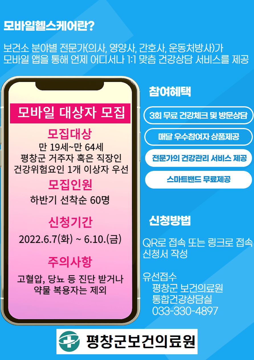 2022년 평창군 모바일헬스케어 하반기 대상자를 모집합니다.