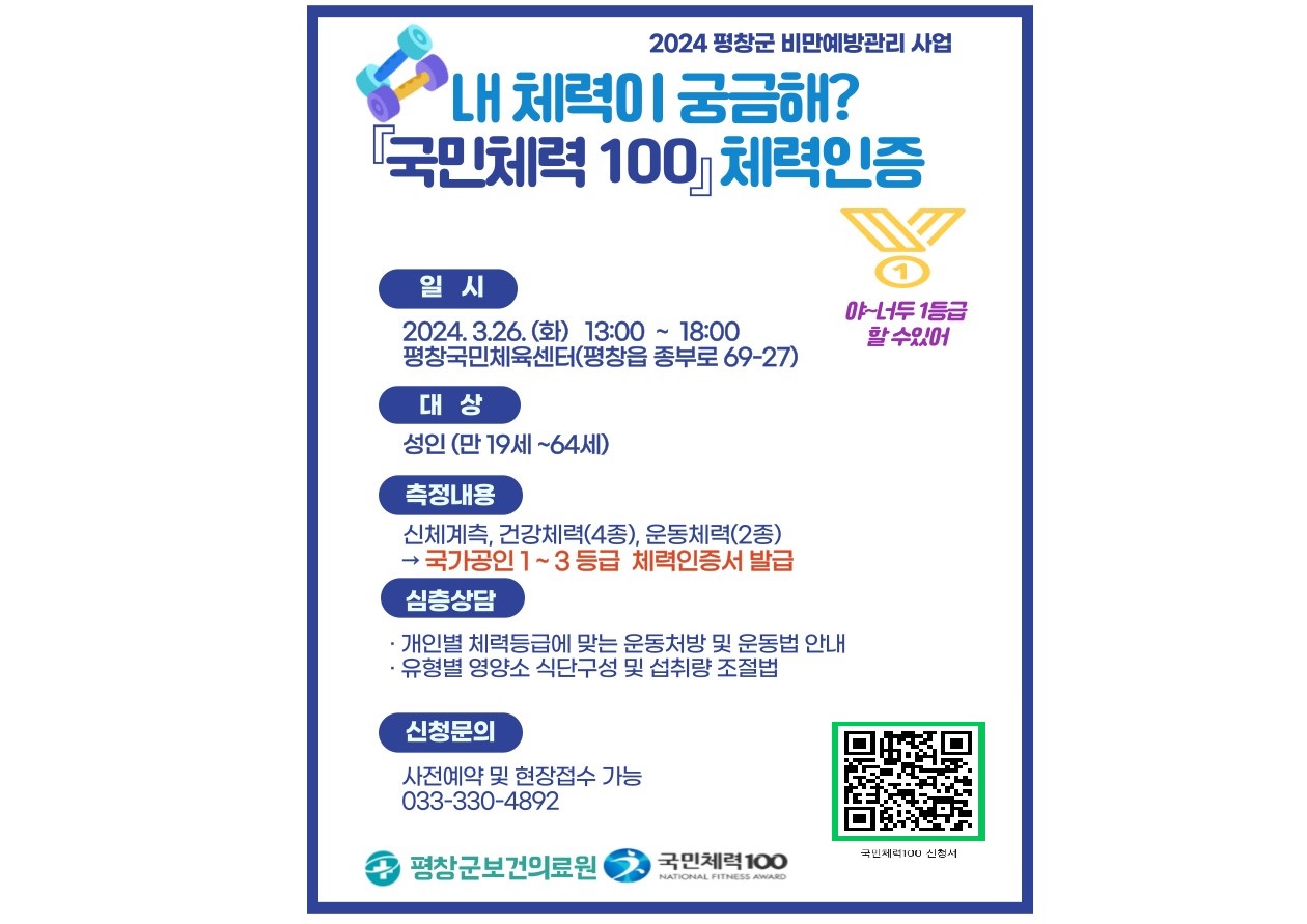 2024년 국민체력100 체력인증 대상자 모집 (40명)