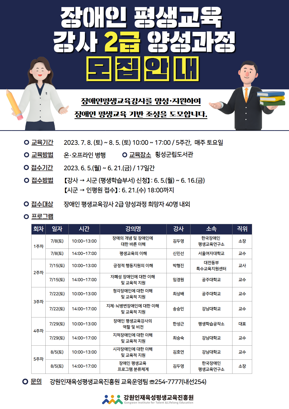 2023년 강원도 장애인 평생교육강사 양성,지원사업 신청안내