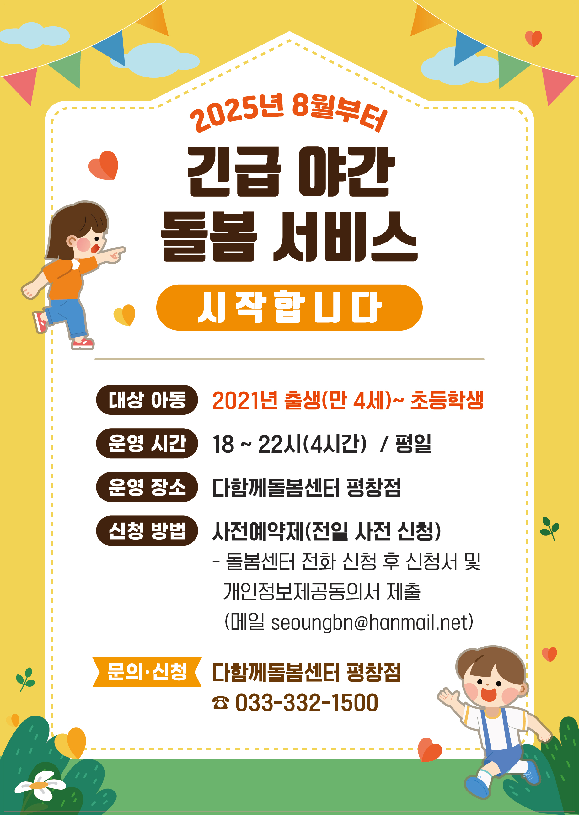 2025년 8월부터 긴급 야간돌봄서비스를 시작합니다