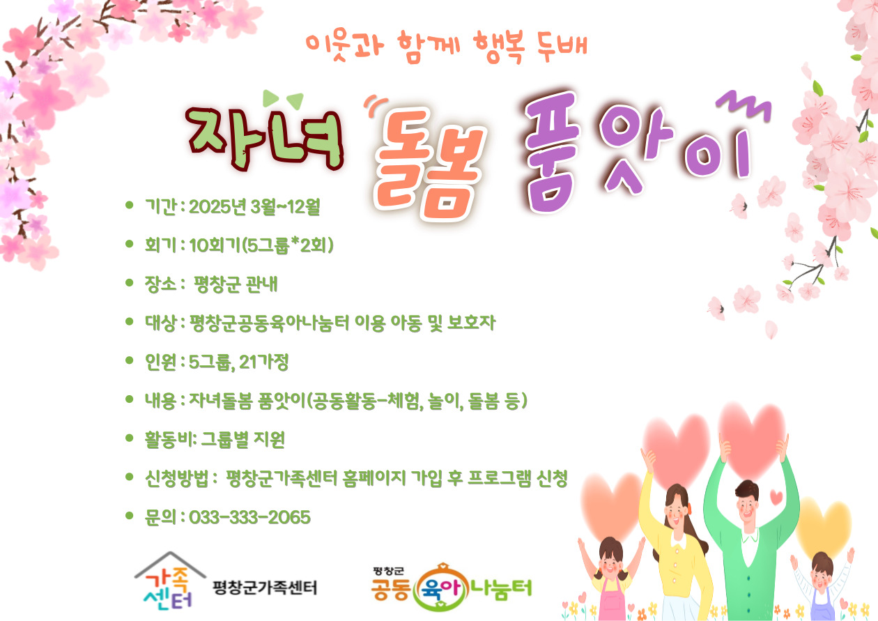 이웃과 함께 행복 두배 "자녀돌봄 품앗이"(공동활동)