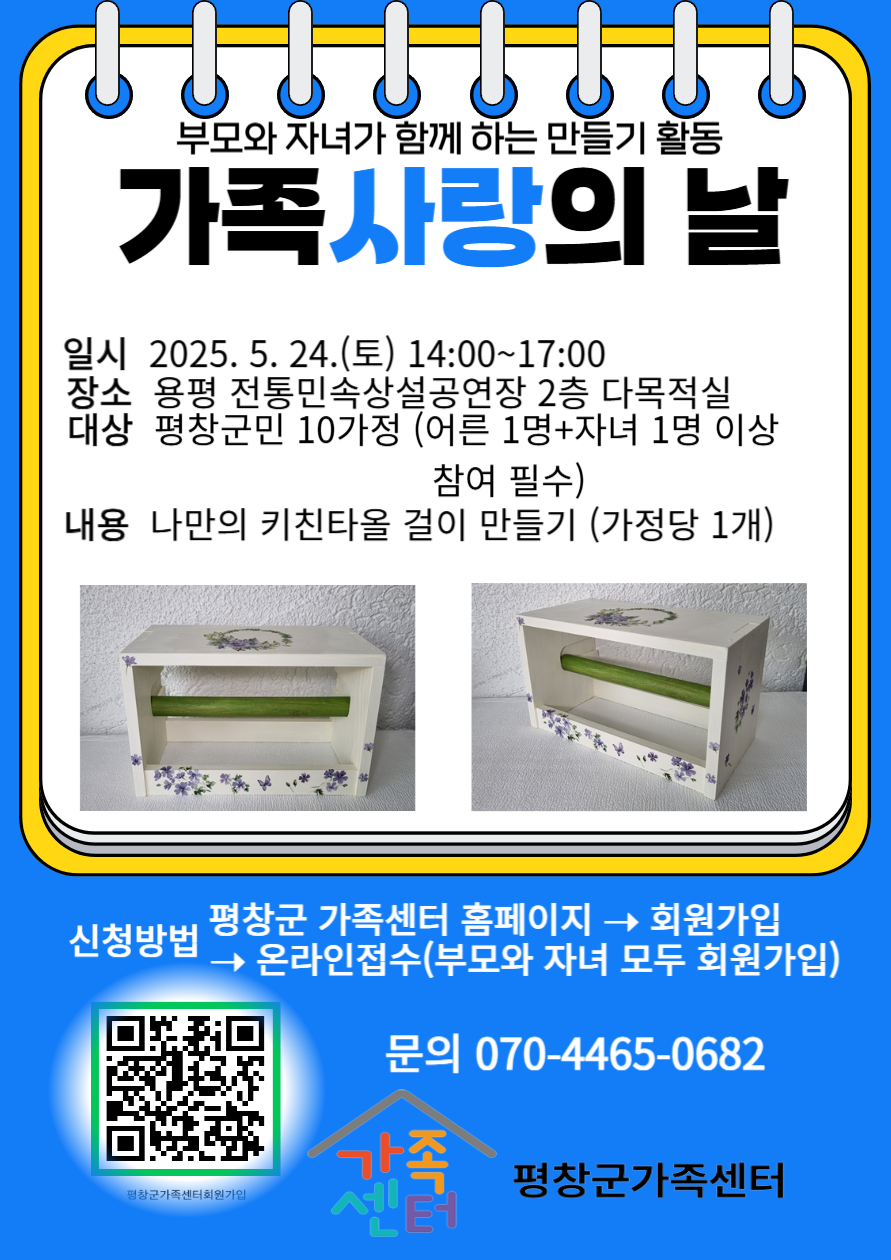 [평창군가족센터] '가족사랑의 날' 나만의 키친타올 걸이 만들기 "용평" 대상자 모집