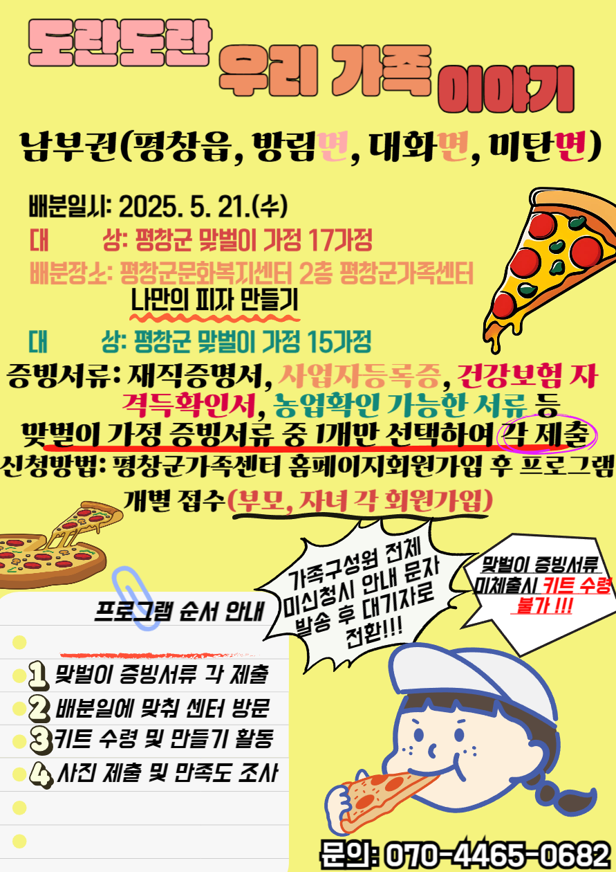 남부권[도란도란 우리 가족 이야기(맞벌이가정 키트배분 사업)] 대상자 모집
