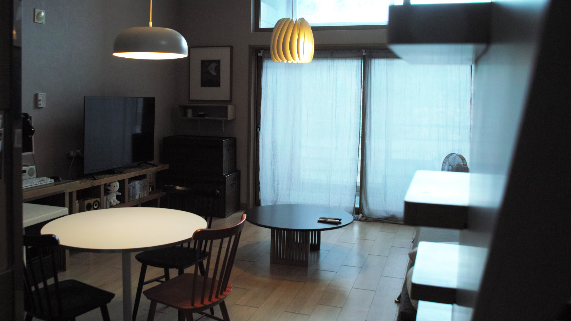 작은 평 수의 복층으로 2~4인 가족(생활:2인/숙박:4인)이 사용하기에 부족함이 없는 구조입니다.