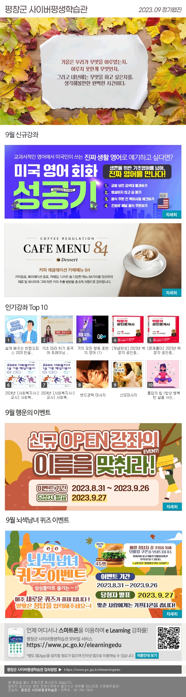 평창군 사이버평생학습관 9월 안내입니다.