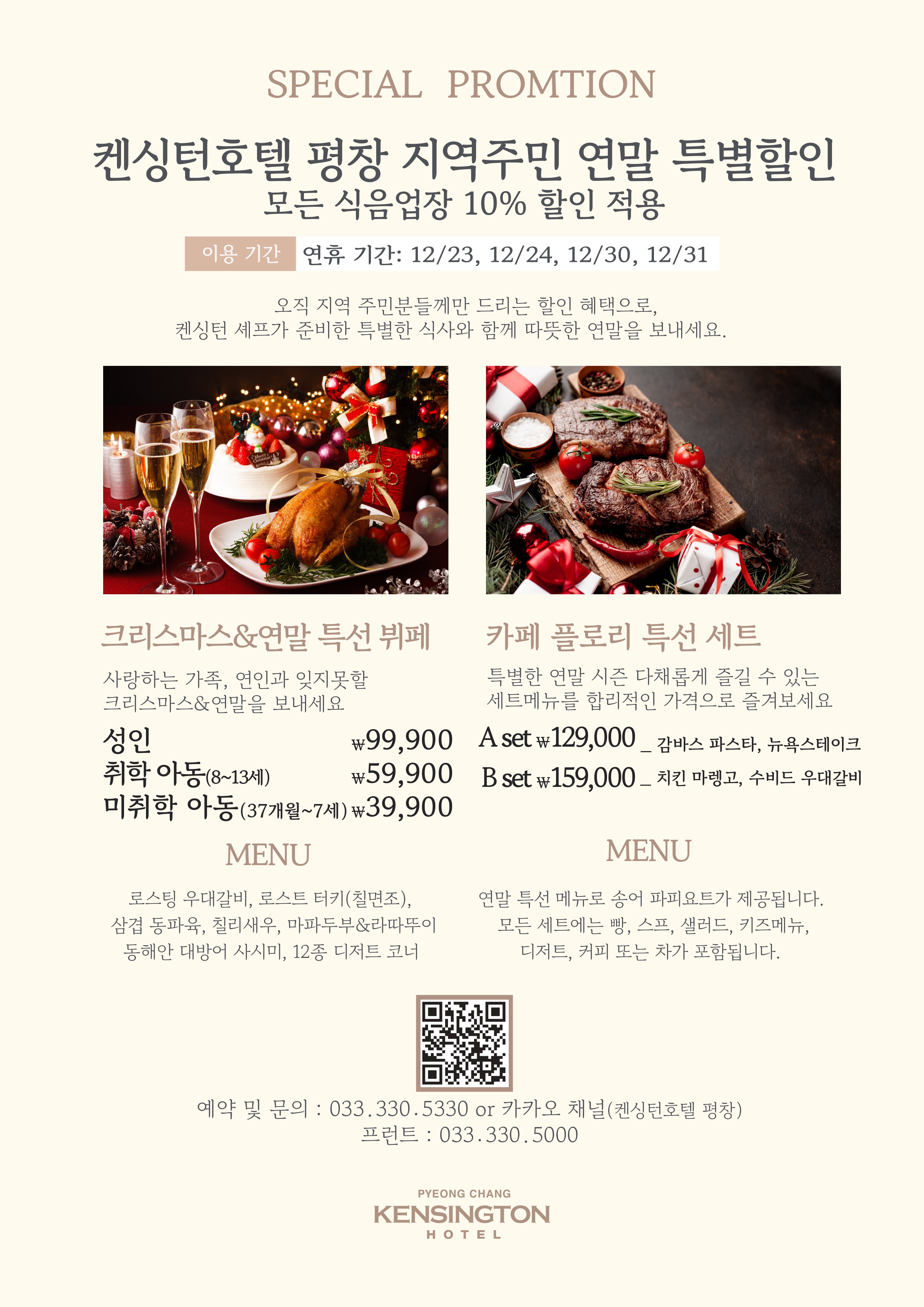 켄싱턴호텔 평창 지역주민 연말 특선메뉴 특별할인