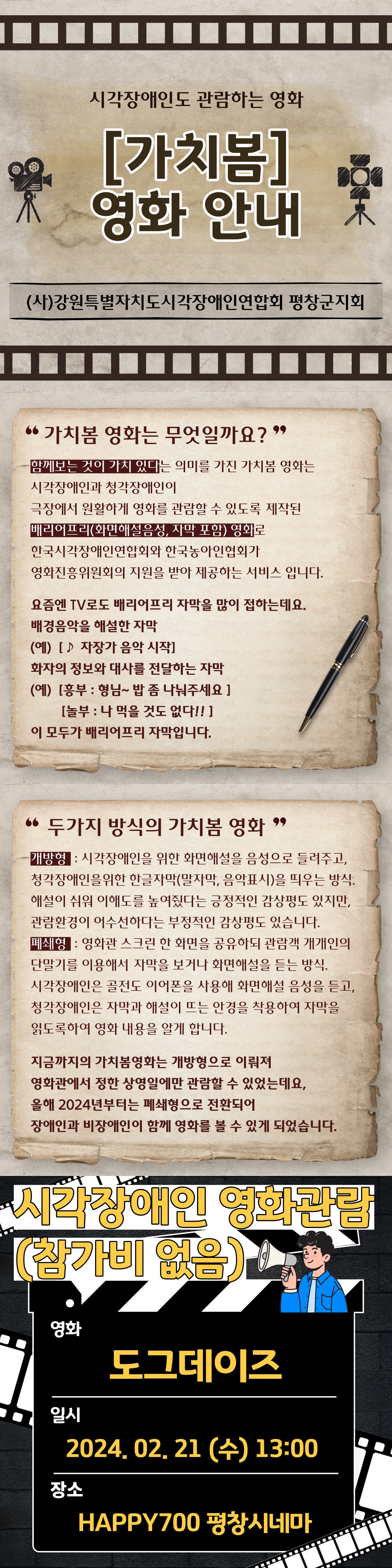 시각장애인을 위한 영화 관람 일정은 안내문 맨 끝부분을 확인해주세요.