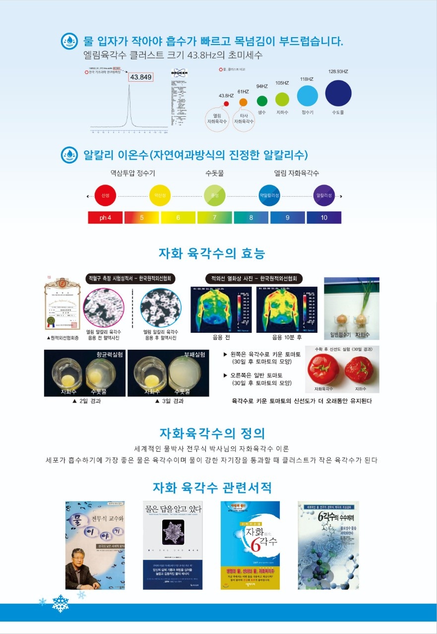 엘림자화수는 깨끗하고 물입자가 미세한 최고의 웰빙기능수입니다