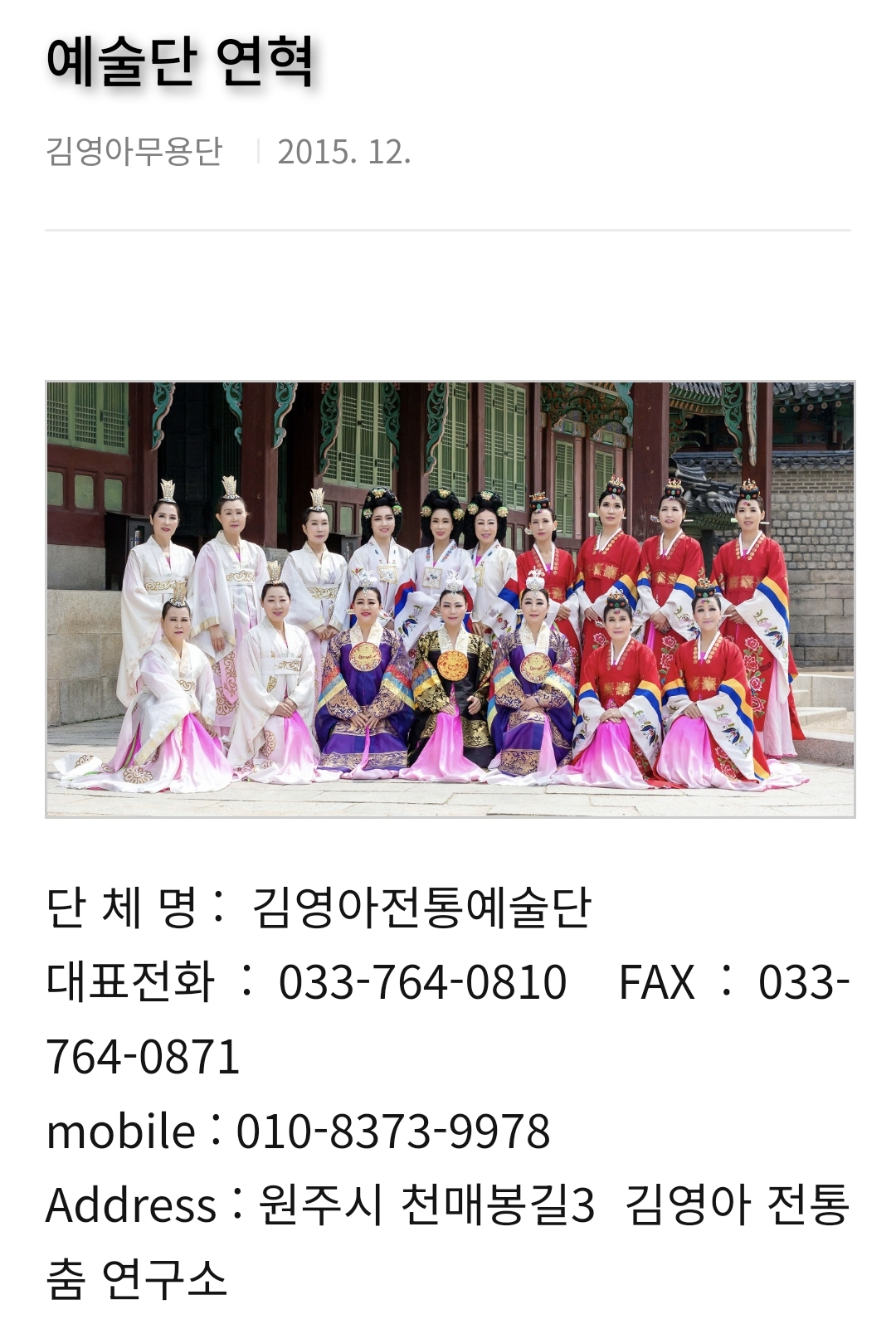 네이버: 김영아전통예술단 검색하시면 됨니다.