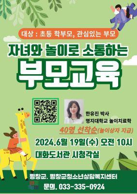 ❍ 강 사 : 한유진 교수( 명지대학교 대학원 놀이치료학과)