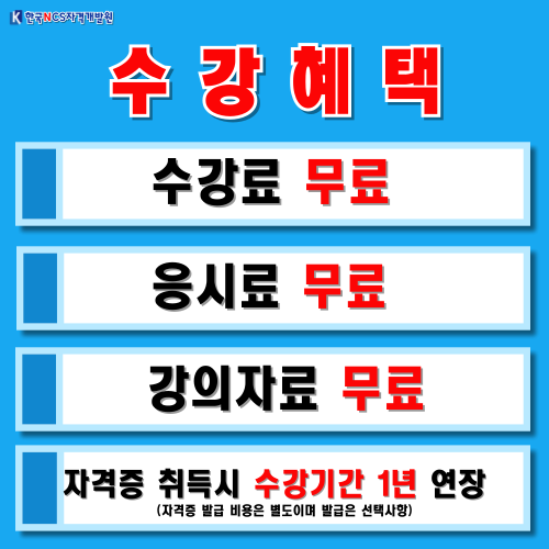 - 비용 : 수강료, 교안&기출문제, 시험응시료 전액 무료(자격증 발급 비용은 본인 부담)