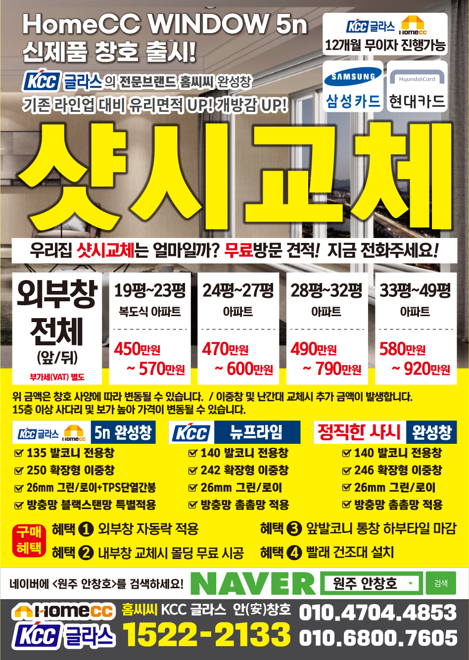 KCC글라스 본사에서 만든 HOMECC완성창 13년보증, KCC, LX zin, DUCOBA 제품을 시공 하고있습니다.