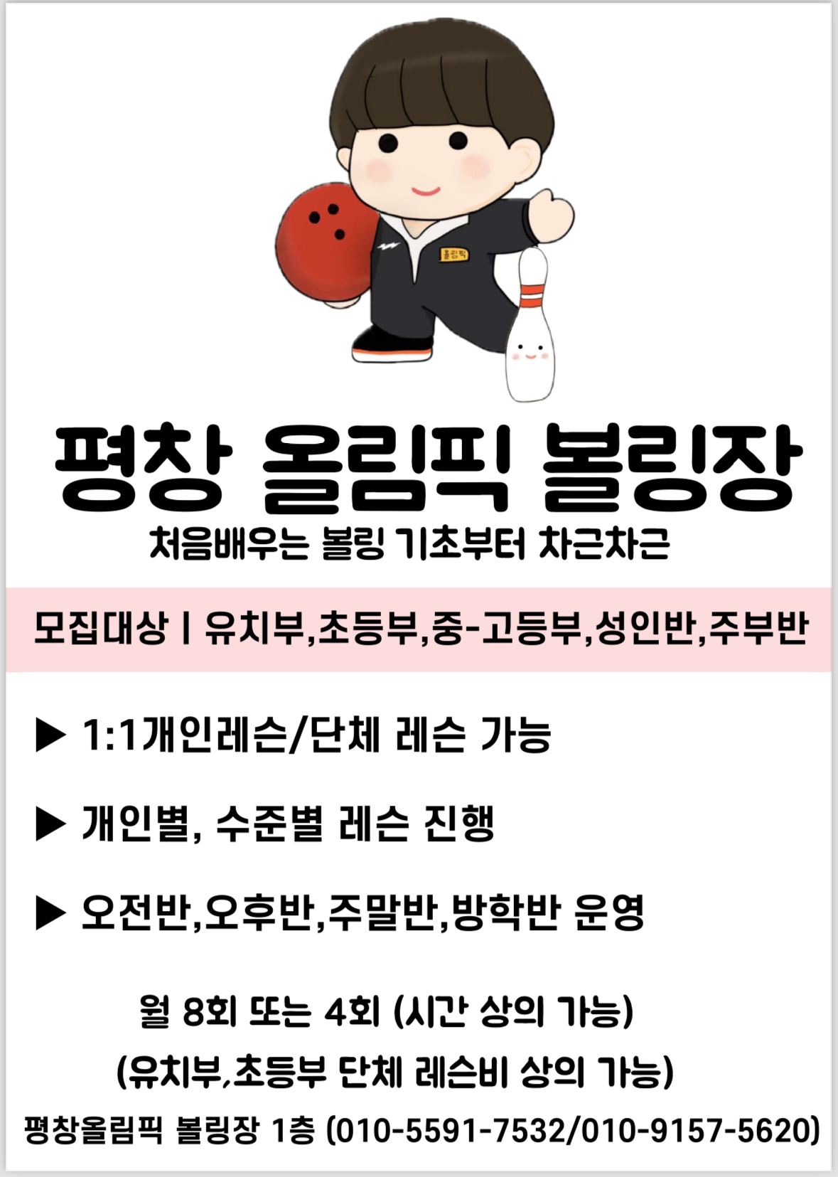 볼링 레슨모집!! ( 유치부,초등부,중-고등부,성인반,주부반)