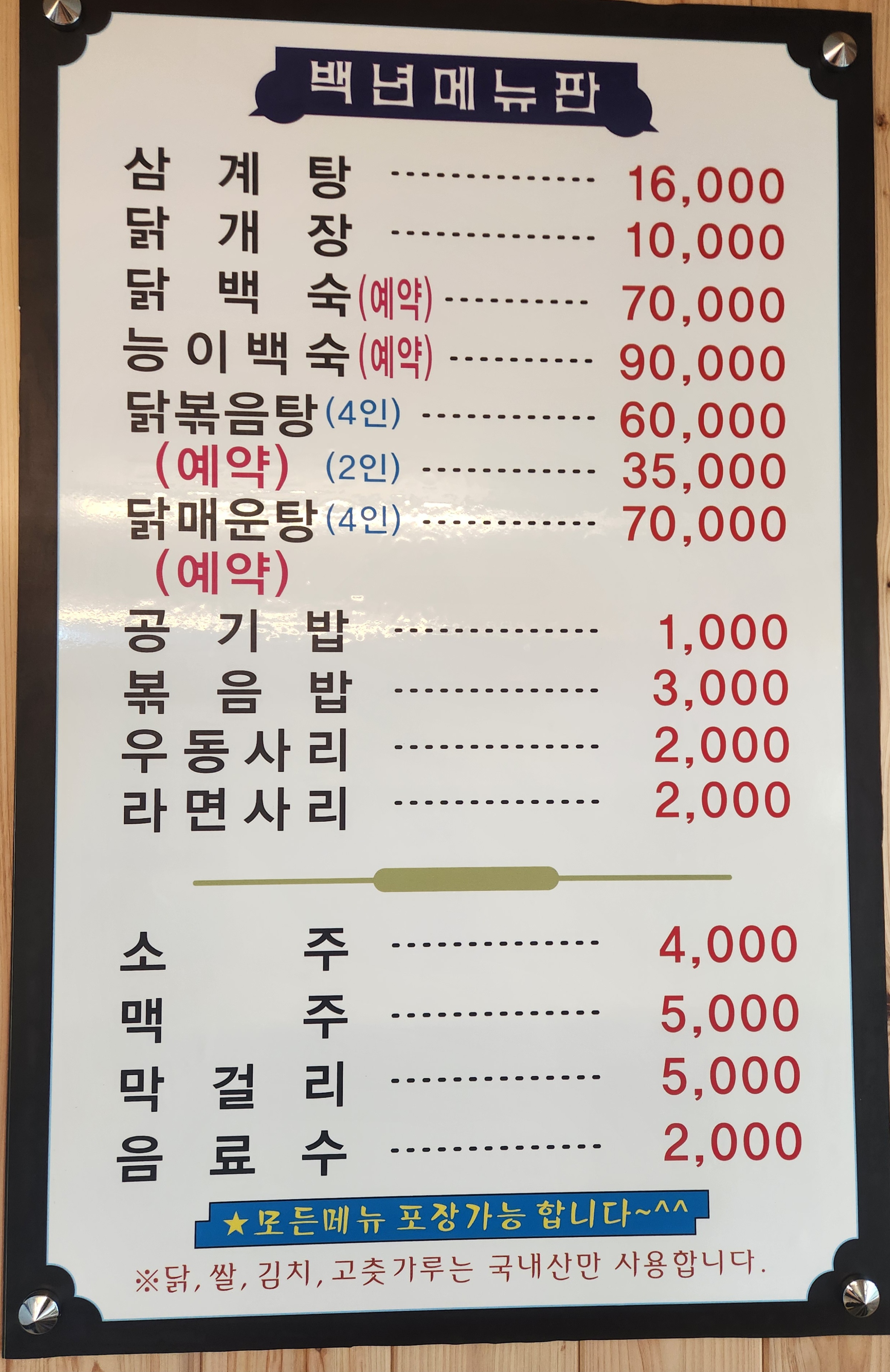 닭백숙ㆍ능이백숙ㆍ닭매운탕ㆍ닭볶음은 드시기 1시간 전에 예약부탁드려요~~^^