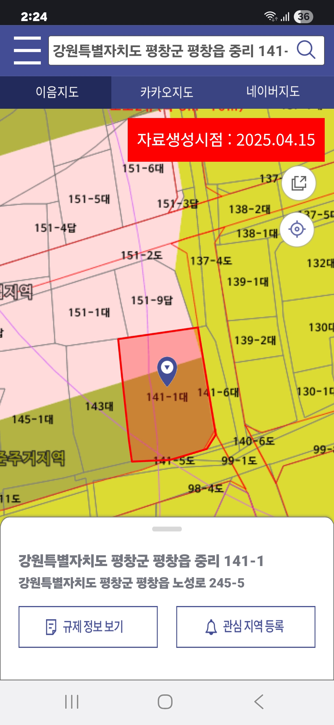 평창읍 중리 141-1 대지 745평방미터 ㅡ빌라,원룸,근린상가건축 적지 연락처:01공-247오-933일
