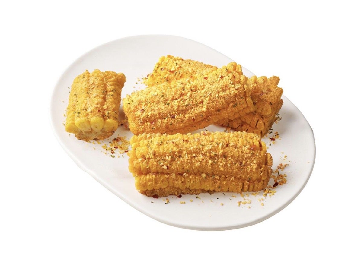 네가지 치즈 시즈닝이 뿌려진 치즈치킨과 사이드 메뉴로 콘립이 나왔습니다 많이 이용해주세요~~