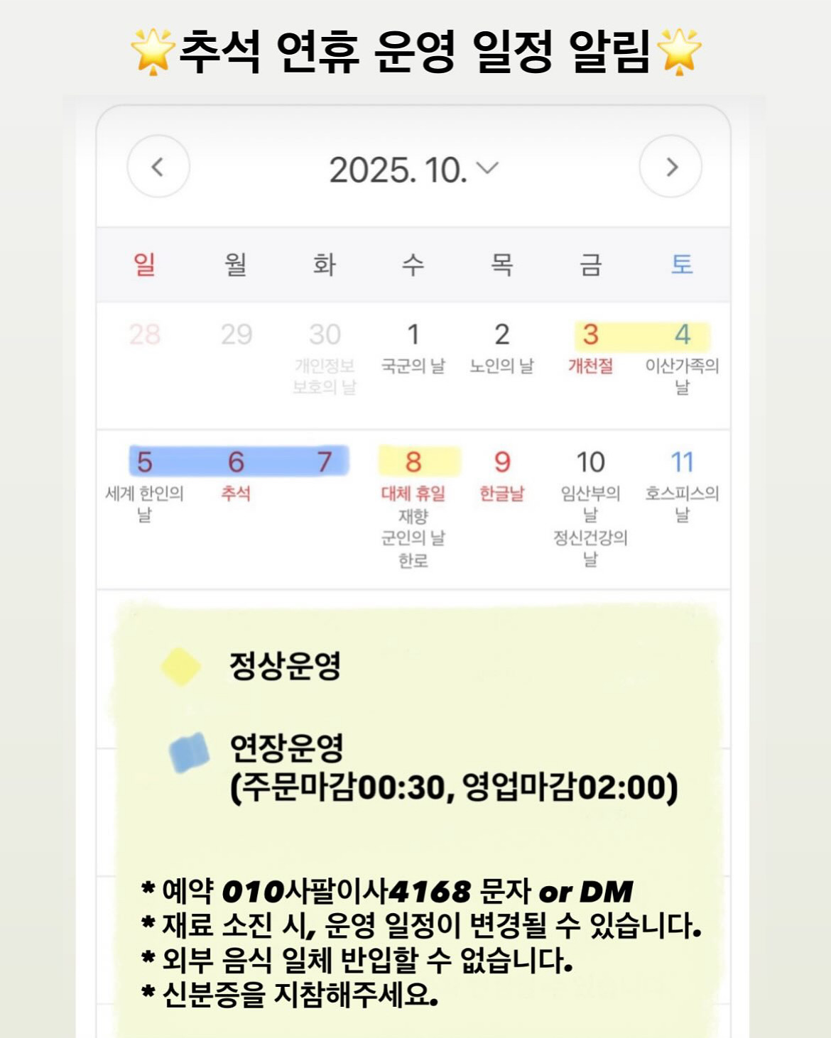 ☑️ 핫플레이스 [추석 연휴 운영 일정 알림]