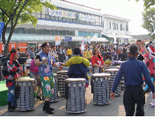 대상리 마을주민공연단 난타공연으로 제천역에서 자매결연 교류행사