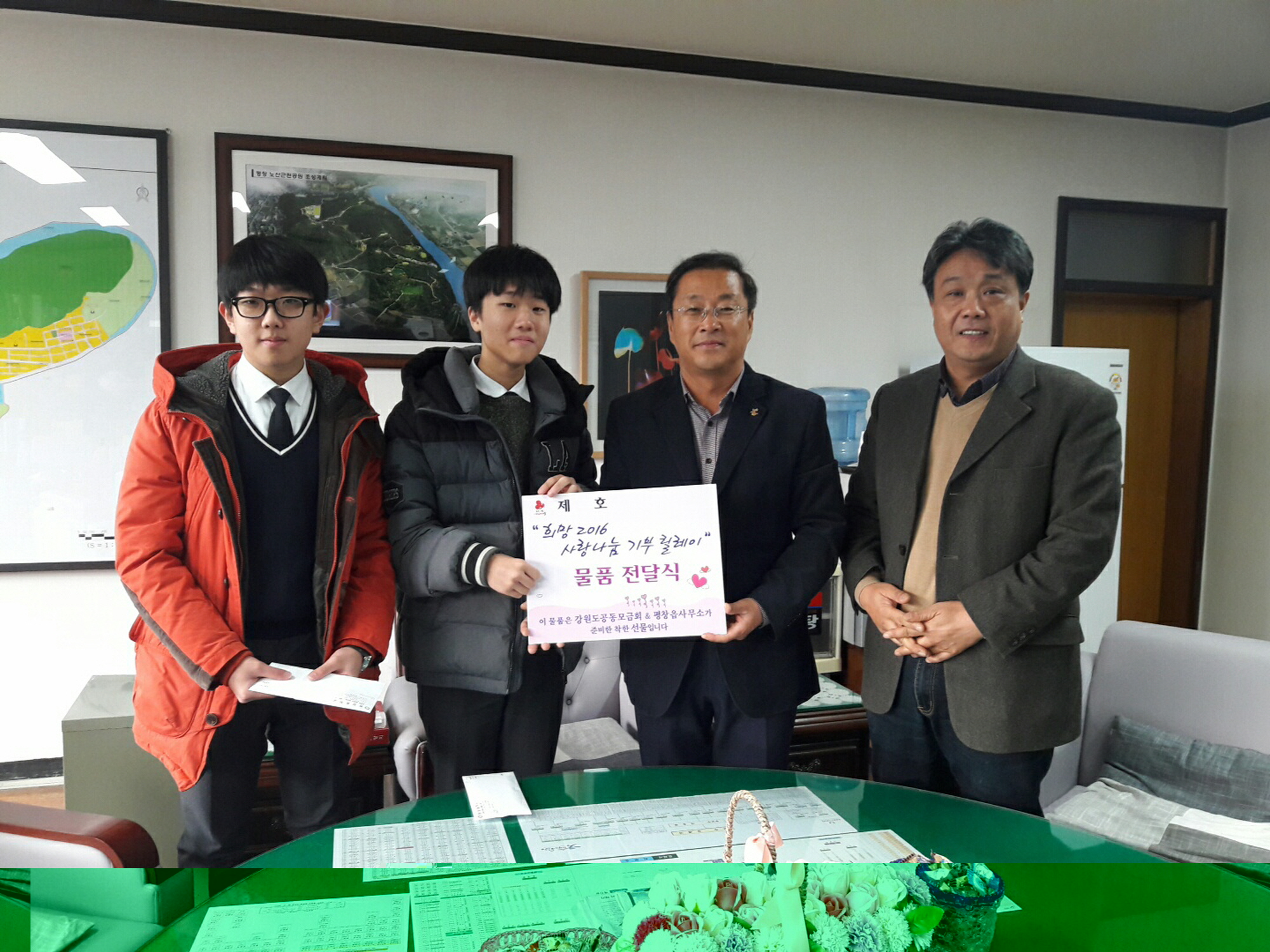 평창중학교(교장 권오현)에서는 11월 25일 지난 10. 20일 개최된 제17회 백오제 수익금으로 지역의 어려운 이웃에 전달해 달라며 평창읍사무소를 방문, 연탄 1,090장(589,000원 상당)을 기탁했다.