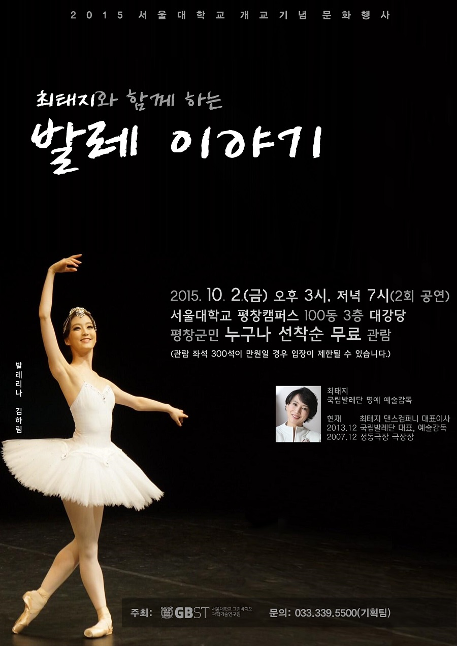 발레단 초청 공연을 아래와 개최할 예정이니, 관심있는 주민들의 많은 관람바랍니다.