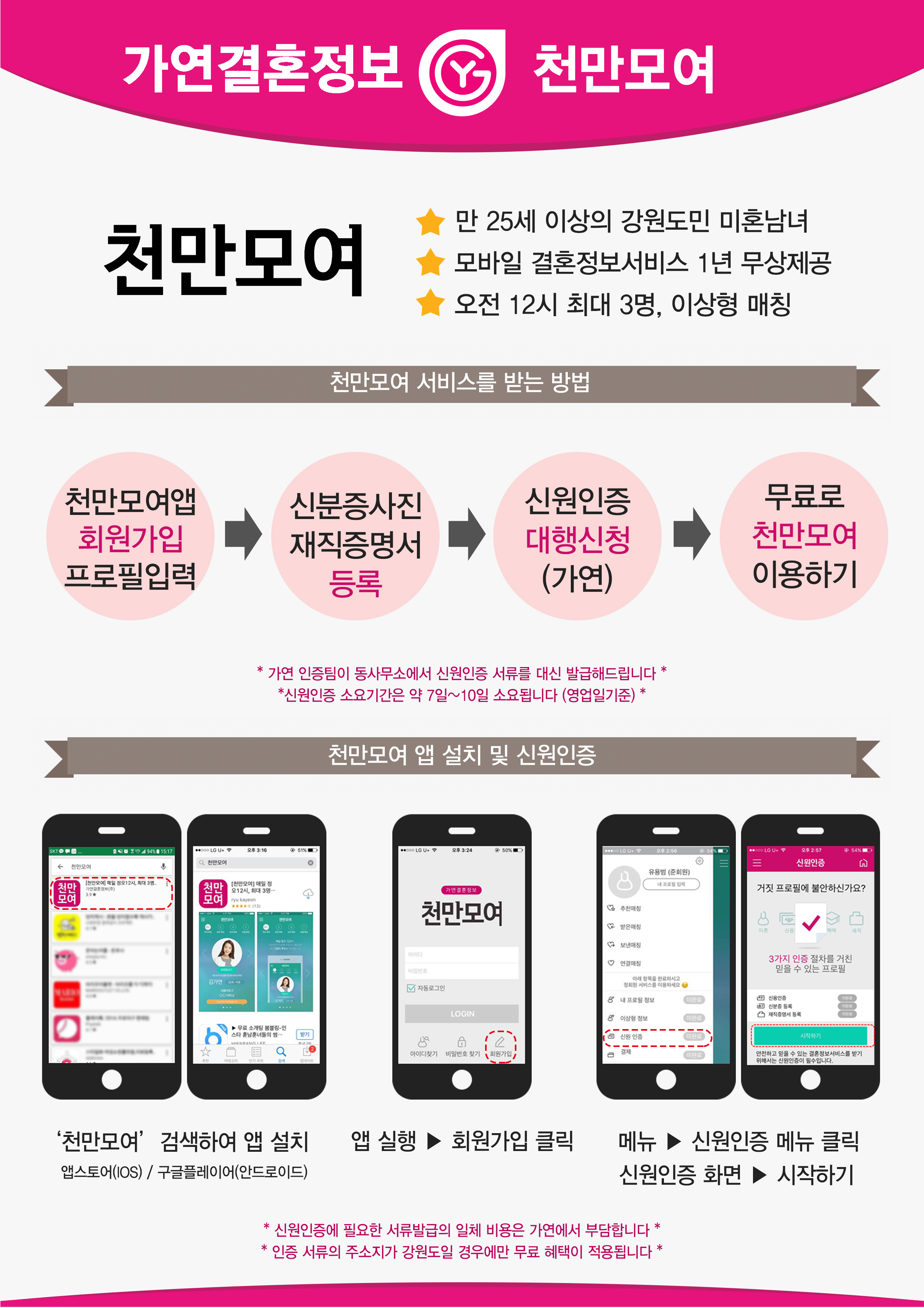 - 사업내용 : 모바일 결혼정보 '천만모여' 연회비(1인 99만원) 무료 제공