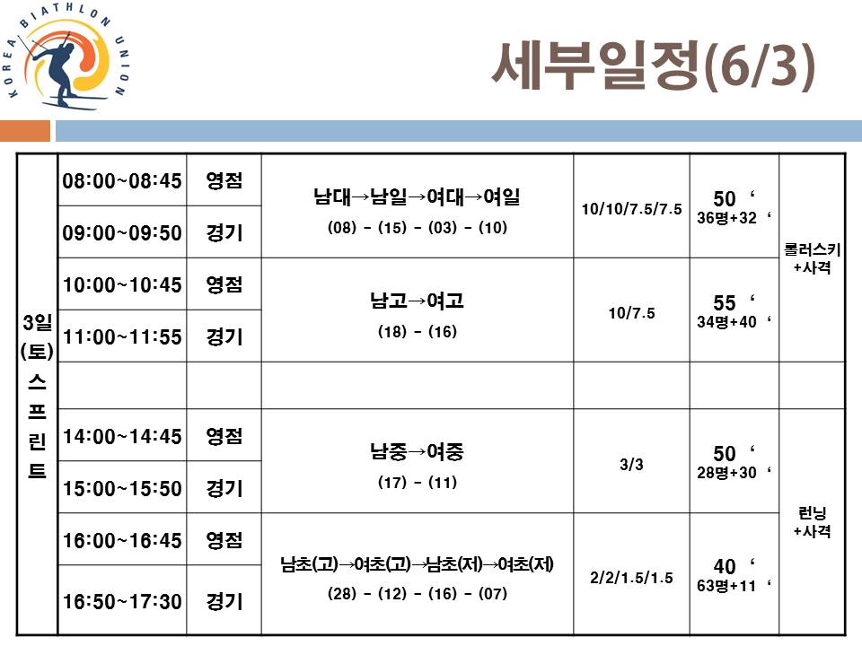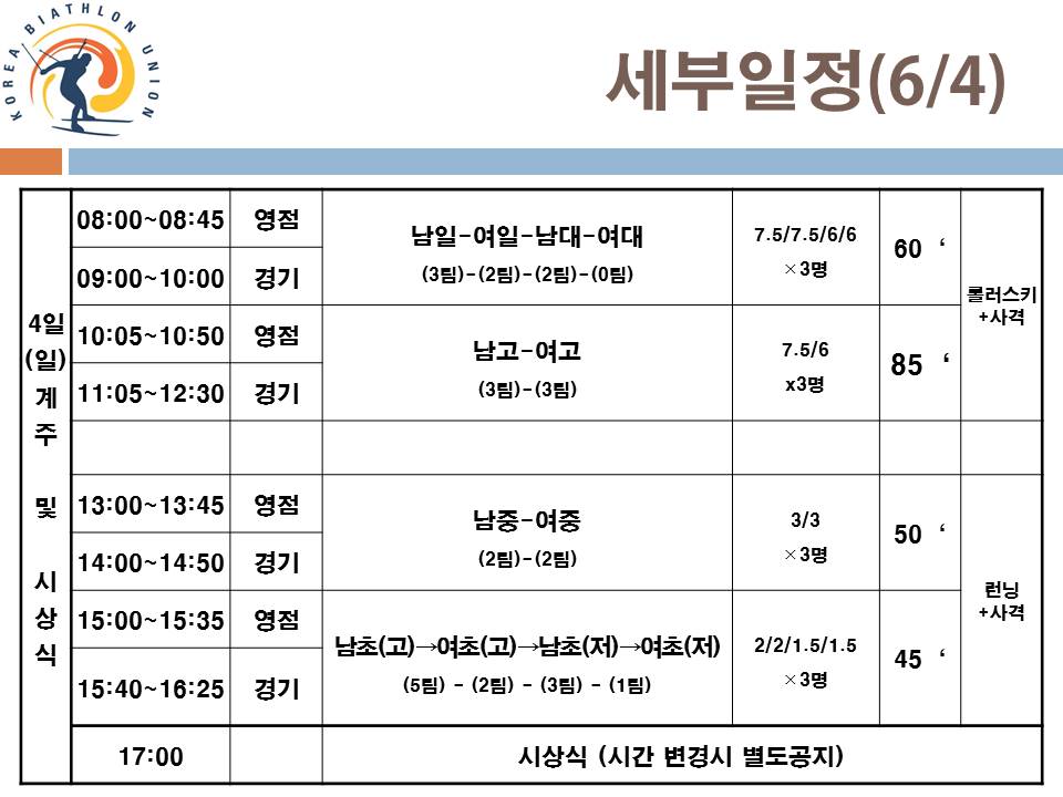 - 종 목 : 스프린트(롤러스키+사격, 런닝+사격), 계주