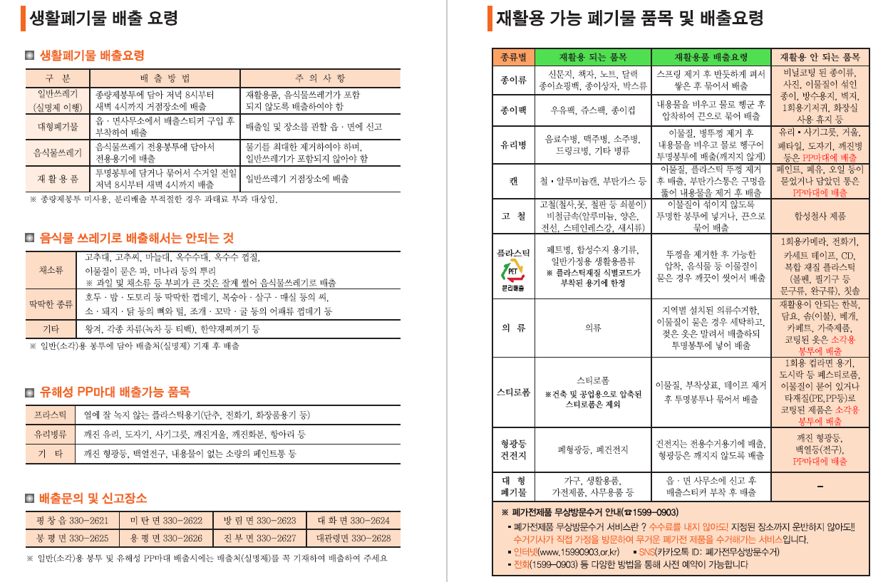 이와 관련하여 생활쓰레기 배출요령(음식물류 폐기물 포함)을 알려드리니 참고하시기 바랍니다.