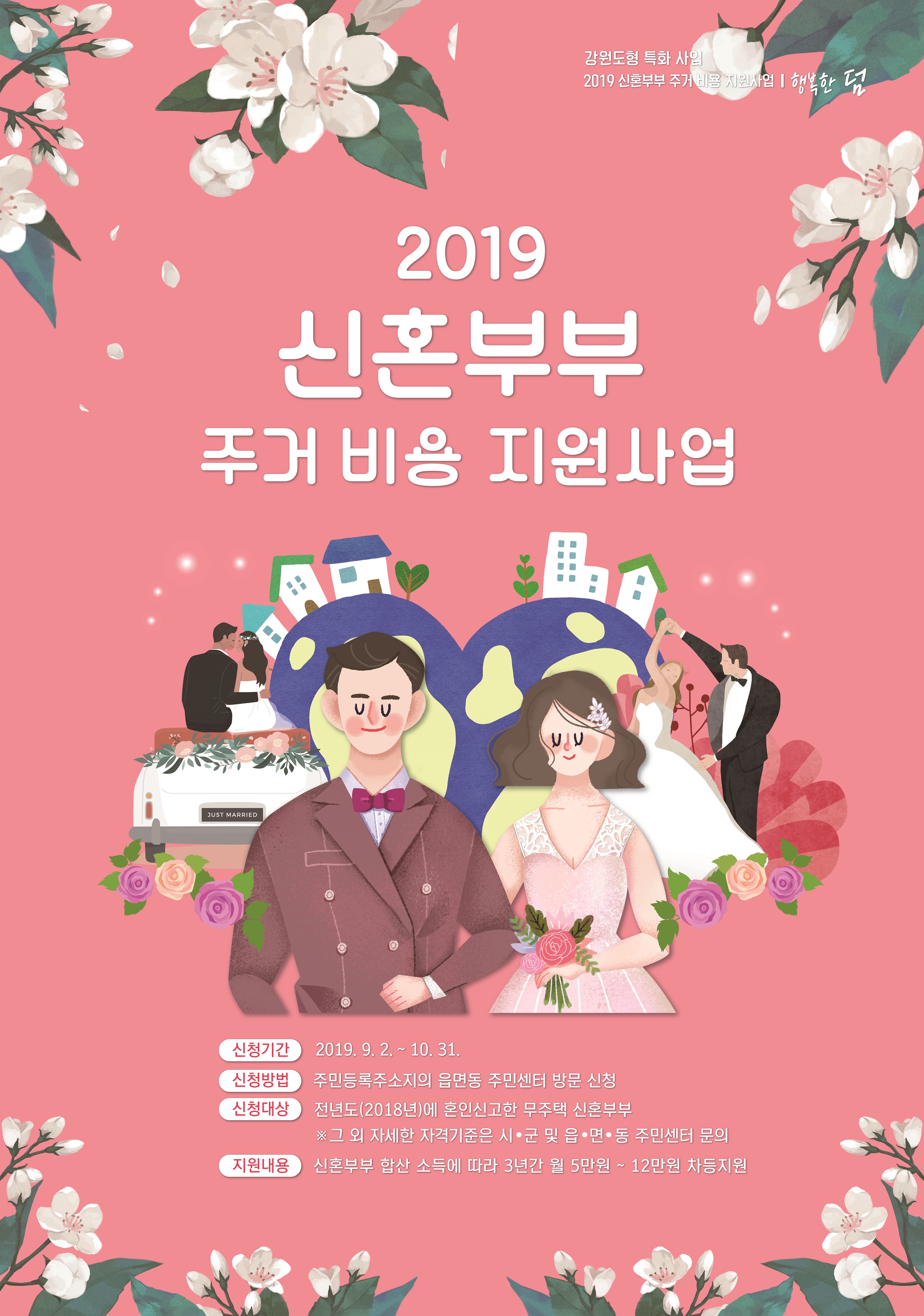 - 신청일 기준, 도내 6개월 이상 계속 거주자로 전년도(‘18.1.1~12.31)에 혼인한 가정으로서,